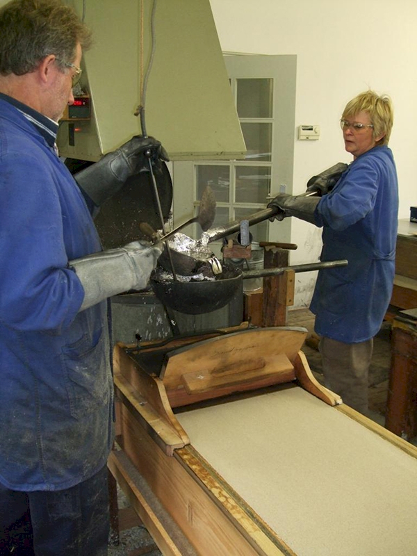 Ela destaca que o trabalho de reparação é realizado com chumbo e estanho. “Nós fazemos a fundição das plataformas, um trabalho manual, sem muitas máquinas. A fundição de chumbo é em 425°C e o estanho, 320°C. Temos que controlar a temperatura. Se dá muita bolha, tem que colocar novamente na plataforma”, exemplifica.