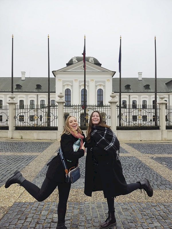 Natália com a também três-maiense Carolina Bohn, em Bratislava, capital da Eslováquia
