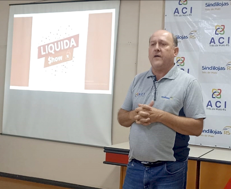 Presidente do Sindilojas de Três de Maio, Dilson Mireski, fez a apresentação do Liquida Show para os associados da ACI e Sindilojas