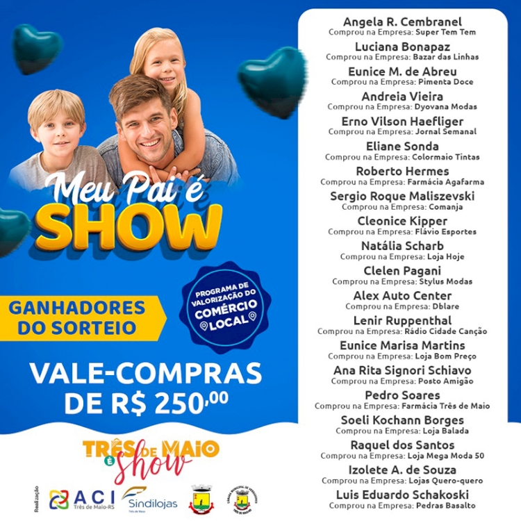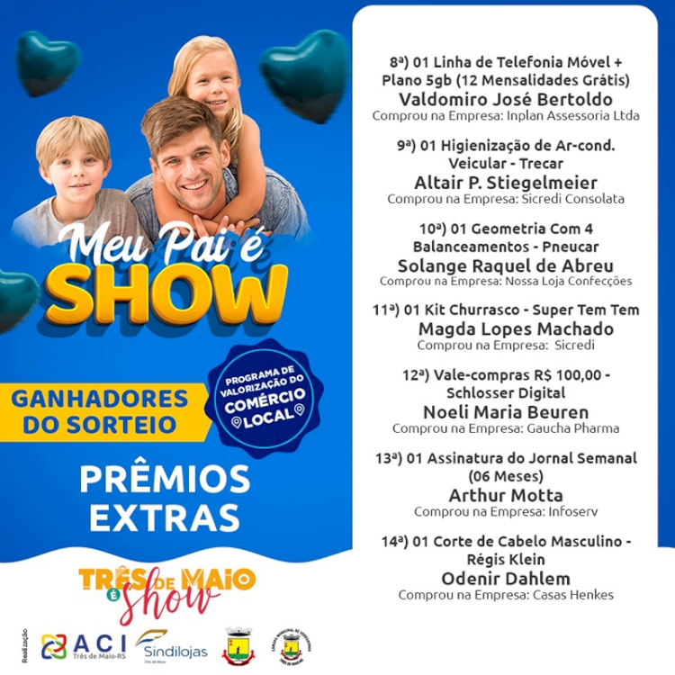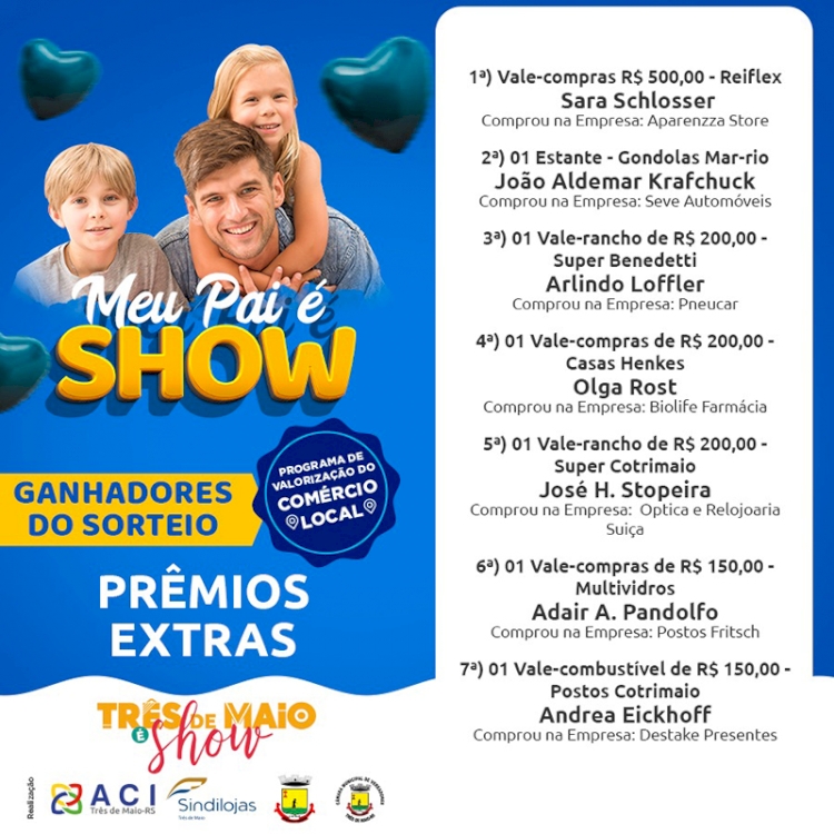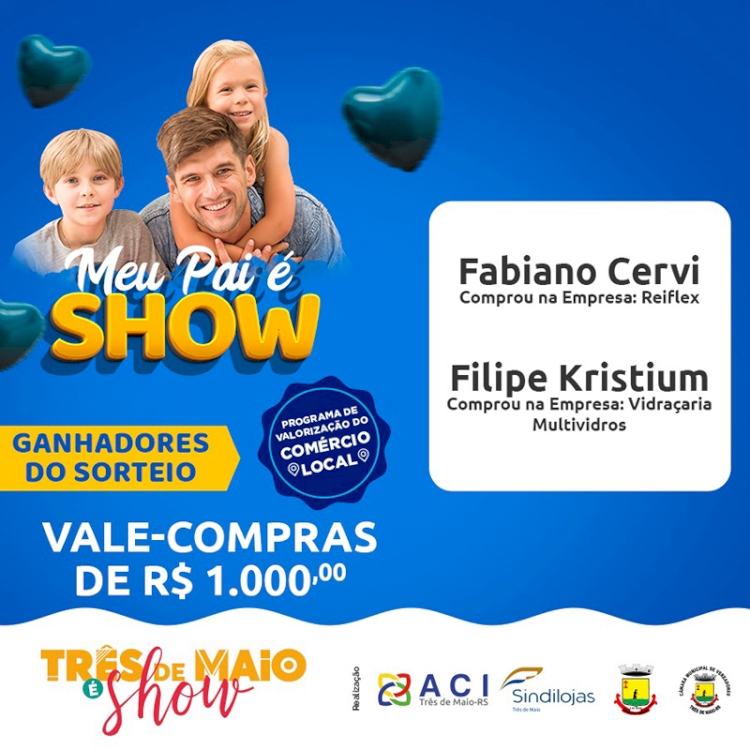 Foi realizado na manhã desta terça-feira (11), o sorteio da campanha de Dia dos Pais do Promocional Três de Maio é Show, realizado pela ACI, Sindilojas, Prefeitura Municipal e Câmara de Vereadores.