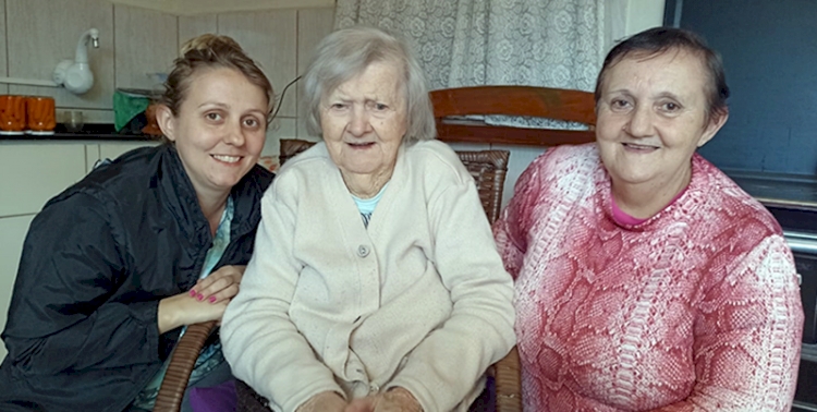 Viúva desde os 75 anos, Irene permaneceu na casa onde viveu com o marido Otto. Há cerca de 10, necessita de cuidados especiais. As filhas Olivia Gelci, Maria Jandira e Dulce Maria (que mora ao lado da mãe), se revezam nos cuidados diários com a mãe.