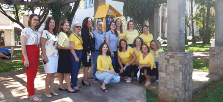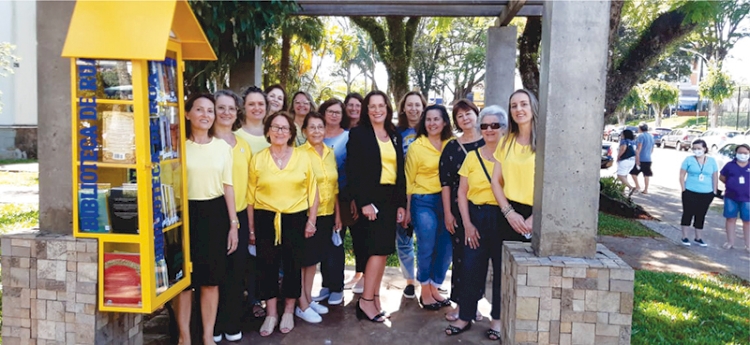 Algumas integrantes da Casa da Amizade com a diretora do Programa Biblioteca de Rua de Santa Rosa, Rosângela Eidt