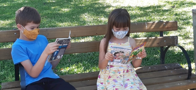 Incentivados pela família – os avós, Idalina e Jaime Cobalchini, e a mãe, Scheila Taísa Cobalchini, que são todos professores –, Davi e Clara são leitores assíduos e reconhecem a importância do hábito da leitura. Alunos do 3º ano e do 1º ano, respectivamente, eles gostaram da ideia da Biblioteca de Rua e garantem que vão voltar mais vezes para retirar outros gibis e livros.