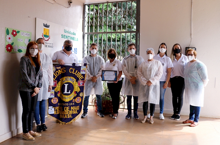 Equipe do Lions Clube entregou um certificado de reconhecimento aos profissionais da Secretaria de Saúde e da Unidade Sentinela, de Três de Maio, no dia 29. A presidente da entidade, Marlene Bandeira, parabenizou a equipe da Secretaria de Saúde pelo trabalho exemplar que está realizando na linha de frente do combate à pandemia