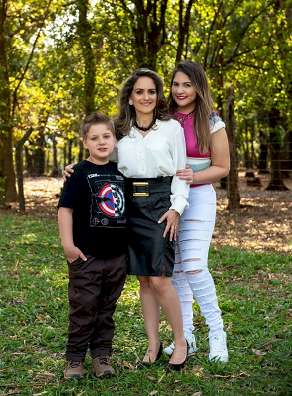 Gilcéia da Silva, em um lindo registro com os filhos, Ketlyn da Silva Losekann, 17 anos,