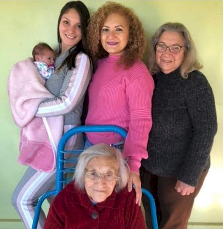 Cinco gerações: Parabéns a dona América Marchet dos Santos, que completou 99 anos no dia 16 de junho. Homenagem da tataraneta Emmeline krügel Ceccon, que completou 1 mês dia 15; da bisneta Valéria Bittencourt krügel Ceccon; da neta Márcia Bittencourt krügel e da filha Marlene Santos de Bittencourt