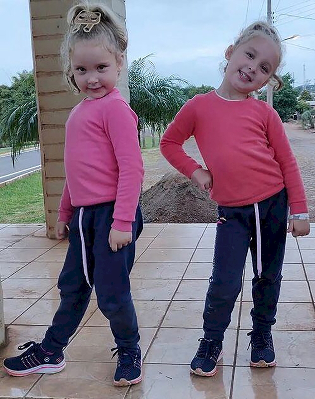 As gêmeas Anabel e Bárbara Pereira de Moraes, 4 anos e 8 meses. Filhas de Betina Rigon Pereira e Douglas Moraes