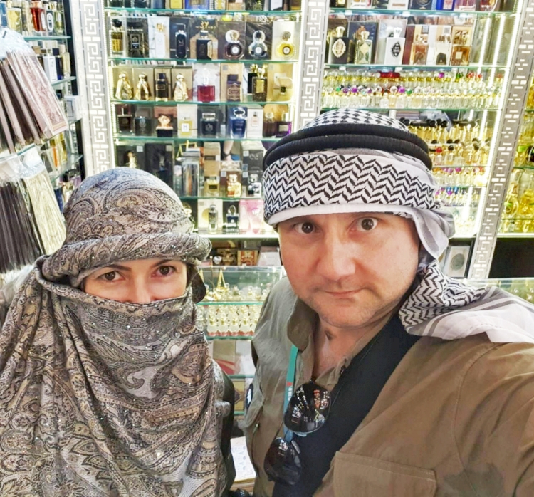O casal Rose e Tiago Benedetti em recente viagem a Dubai. Cultura, conhecimento e muitos passeios. O registro foi em Milacle Garden (foto ao lado) e Mercado do Ouro (foto acima).