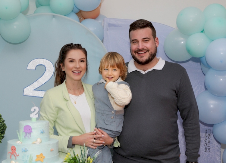 Os papais Taciara Demboski e Ricardo Carls comemoraram os dois aninhos do filho Bernardo Demboski Carls.
