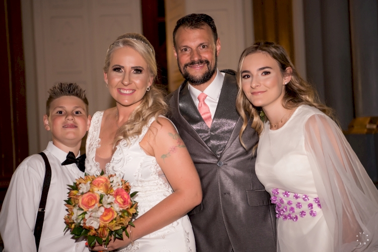 realizada na igreja Matriz Católica de Três de Maio. Após, o casal e os filhos Yasmim e Caetano