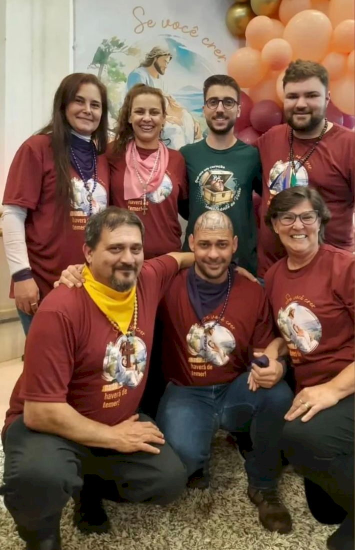 Adriana, Luana, Bruno, Romulo. Roque, Marcos e Eliege Rigon estiveram presentes no 11° Acampamento Sênior da Igreja Católica de Três de Maio. É a família Avipae - Associação Vida Plena Amor Exigente - auxiliando no acampamento.