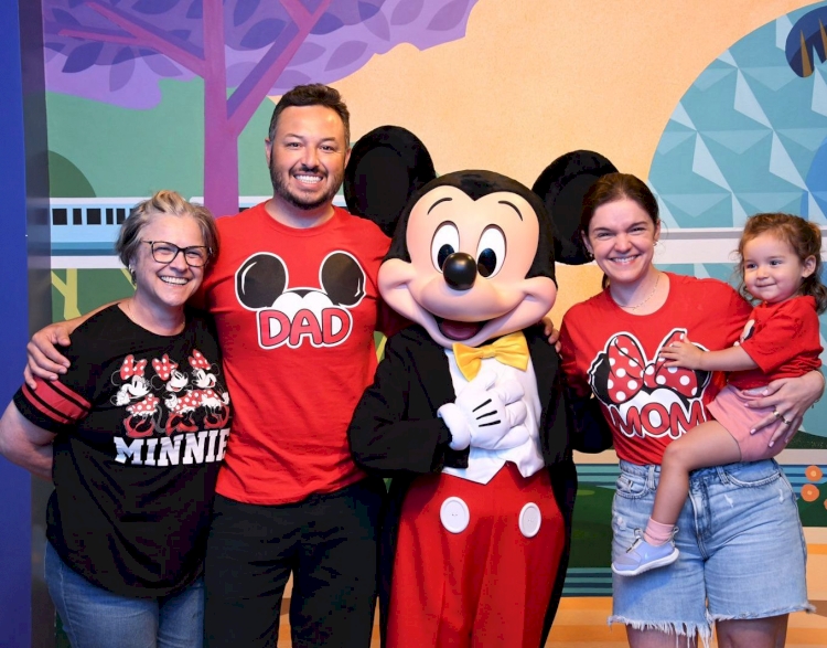 Uma visita com lindos passeios ao mundo da Disney, no parque EPCOT, em Orlando, na Flórida. Alegria e memórias afetivas para guardar no coração. No registro, Marta Manjabosco com a sobrinha Ana, acompanhada do marido, Matheus, e da pequena Louise.
