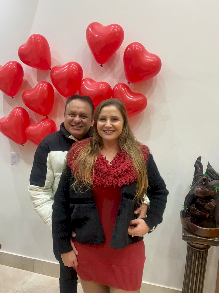 O casal Sevenir e Lisiane Sklar em dia de agenda social, em comemoração ao Dia dos Namorados