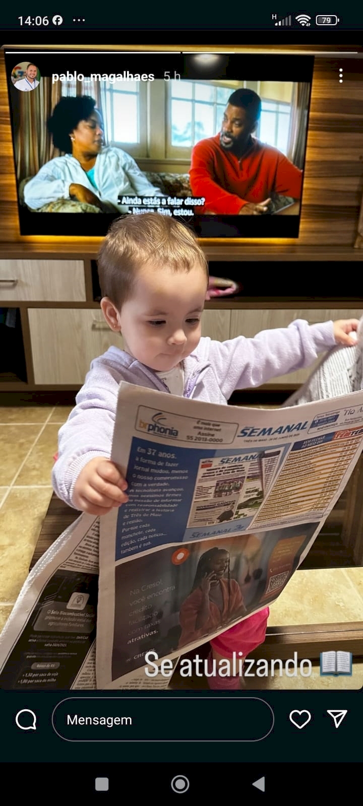 No registro, Maitê Figueiró de Magalhães, de apenas 2 anos, conferindo a edição.