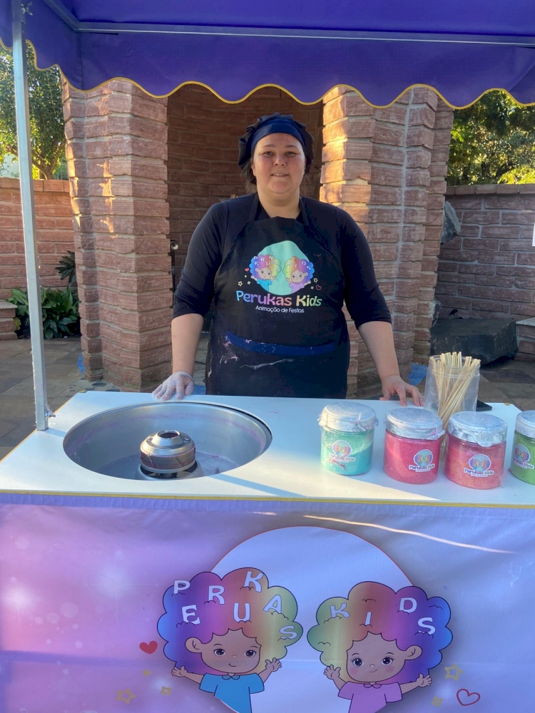 Cristina Werle Turra, muito amável e eficiente, é figura constante nas festas de aniversário infantis, alegrando e proporcionando doçuras como pipocas e algodão-doce. O registro foi no último domingo, 6, na Praça da Matriz Católica!