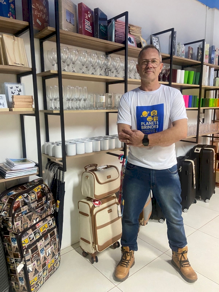 Inaugura, hoje, dia 3, a Planeta Brindes, de propriedade de Carlos Roberto Coleto, conhecido como Beto. A loja é voltada para artigos personalizados - caneca, copos, térmica, camiseta, bonés, cuias etc, além de oferecer artigos de viagens como malas e mochilas. Outro ponto são as variedades em artigos de presentes, que vão desde protótipos 3D, quadros, porta-retratos, álbuns, livros, vinhos da Vinícola Weber, e até revelação de fotografias de momentos especiais.
