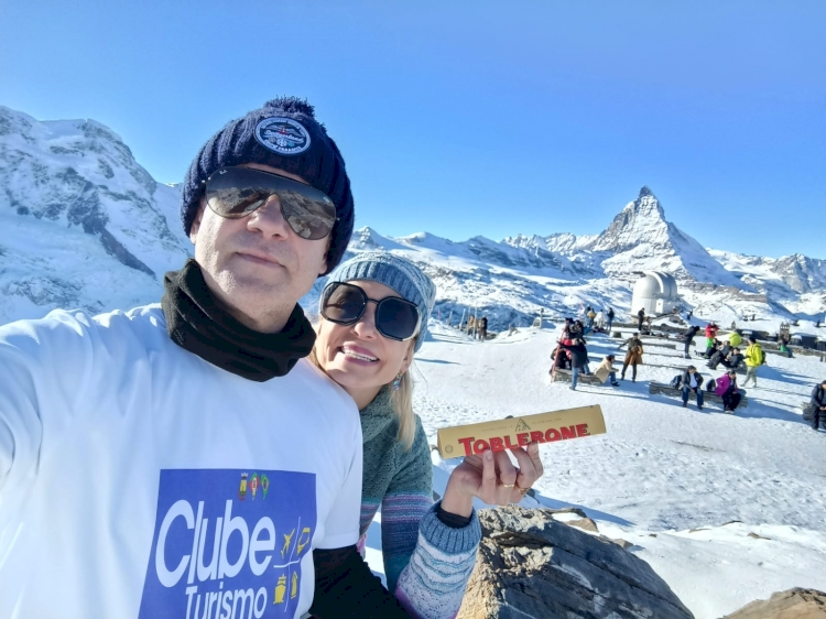Um registro do casal Roberto Carlos Coleto e Carolina Zimmer, em Zermatt/Suíça. O casal também fez um pit stop em Berlim e Munique, na Alemanha; Praga, na República Tcheca; Viena, na Áustria; além de Zurique, Berna, Montreux e Genebra.