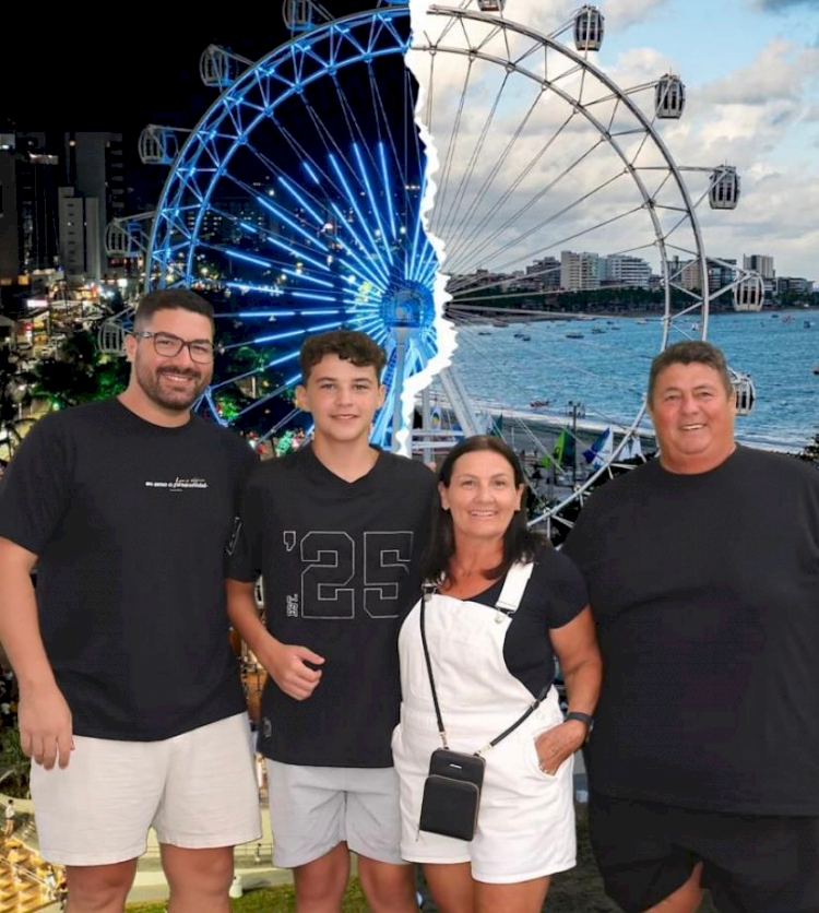 O casal Marjane Sacchet e Vilson dos Santos e o neto Victor Alegranzzi dos Santos em recente visita ao filho Fernando Sacchet dos Santos, que reside em Maceió, Alagoas.