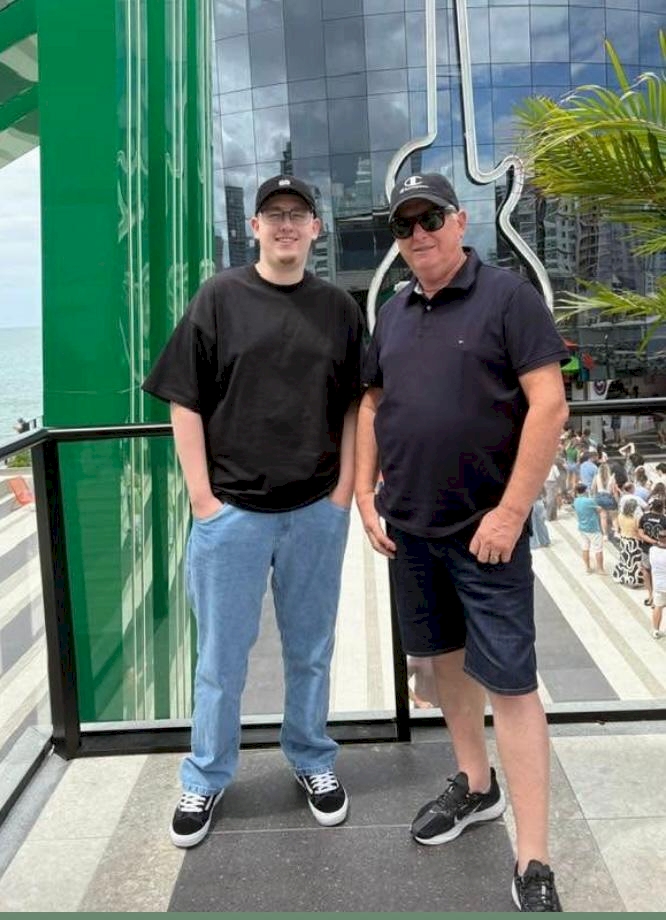 Eduardo e Astor Kolling (Leia-se Morada Sul Empreendimentos), pai e filho, em recentes férias em Meia Praia, Itapema (SC).