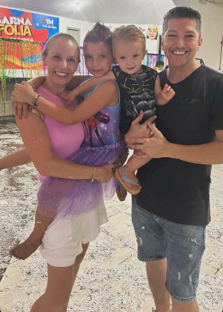 Os papais Clariana Wächter e Luís Fiorim curtiram a festa com os filhos Rafaela e Benício