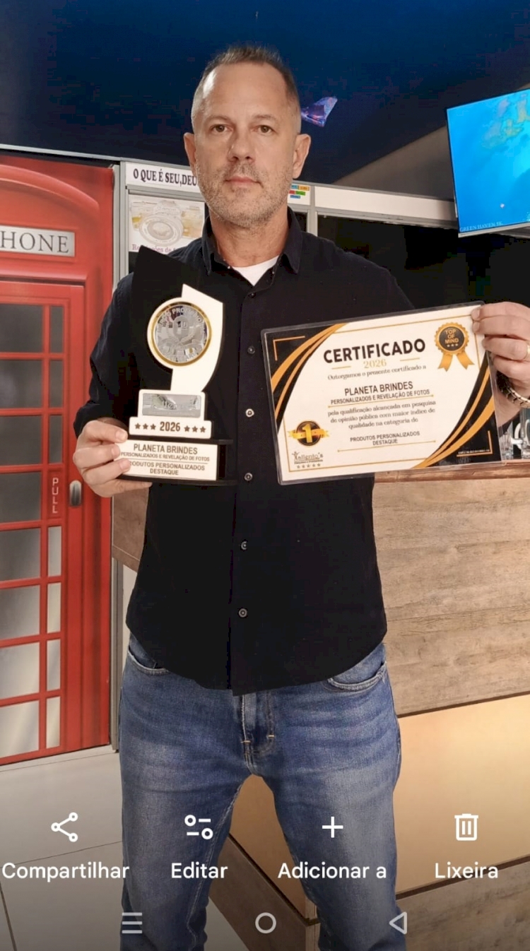 Parabéns ao empresário Beto Coleto (leia-se Planeta Brindes), pela conquista do troféu e placa de 1º Lugar na categoria empresa “Brindes e Produtos Personalizados”. Este reconhecimento é o reflexo direto de um trabalho pautado pela dedicação, esforço e determinação constante.