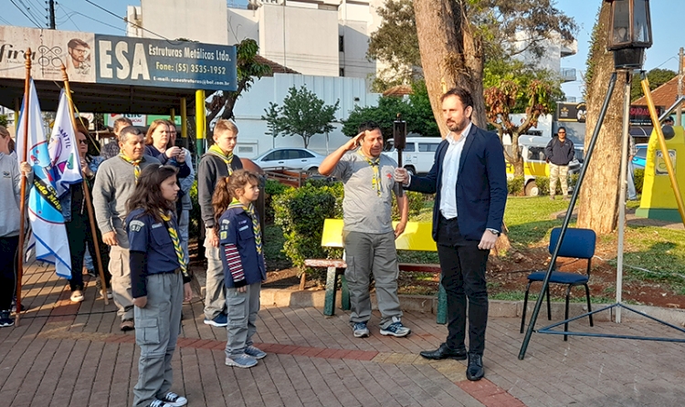 O Fogo Simbólico foi conduzido pelo Grupo Escoteiro Flor de Maio pelas ruas da cidade, até a Praça Henrique Becker Filho, e entregue ao prefeito Marcos Corso