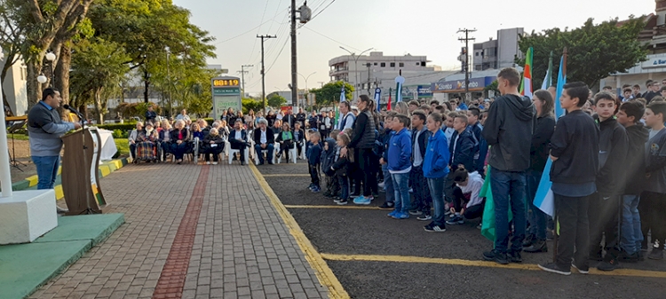 “Memórias centenárias na educação três-maiense”. É sob esta temática que toda a programação da Semana da Pátria 2022 de Três de Maio está organizada e teve início na manhã de ontem, 1º, na Praça Henrique Becker Filho. A solenidade contou com a presença de autoridades municipais, estudantes e representantes de escolas – de todas as redes de ensino, entidades e instituições; e foi marcada por atitudes de valorização e reconhecimento às pessoas que contribuíram para a história de Três de Maio.