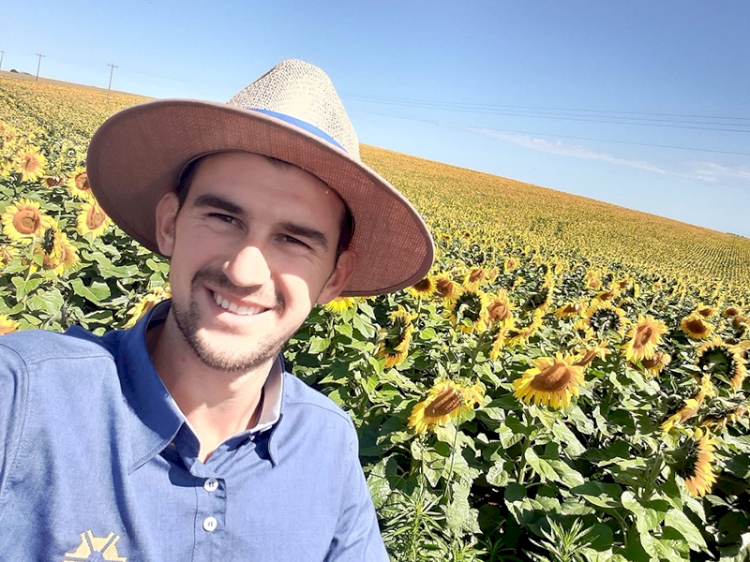 Daniel Juliano Rost, 26 anos, está dando sequência ao legado da família na propriedade localizada no Distrito de Quaraim, interior de Três de Maio. O registro, em meios a uma lavoura de girassóis, foi da conclusão do curso em Agronomia