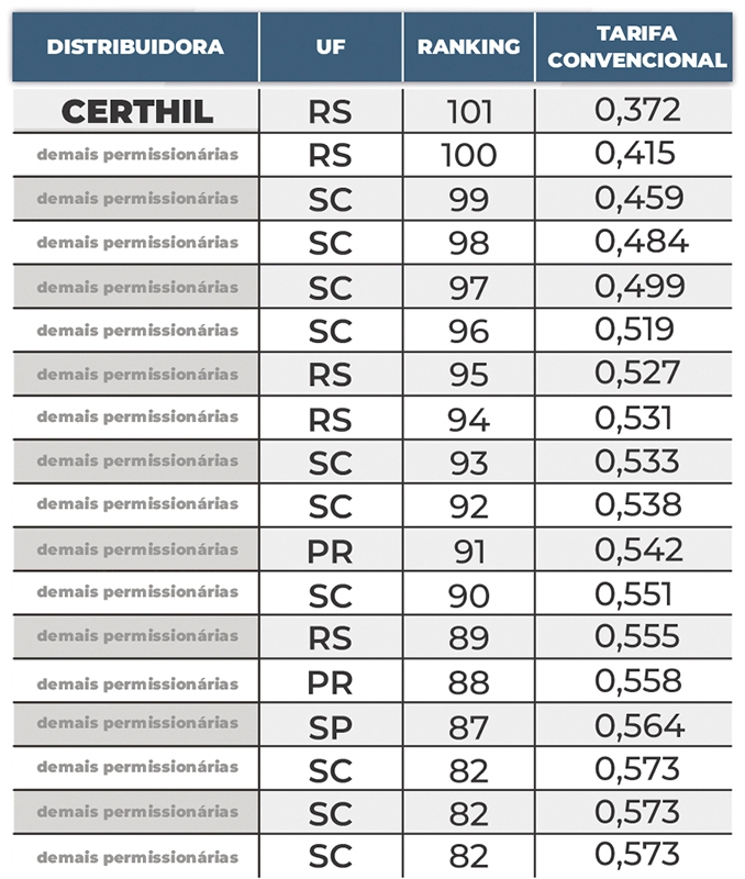 Além dos investimentos, em 2022 a cooperativa migrou, juntamente com outras 3 cooperativas, para o ambiente de contratação livre, comprando parte da energia a custos menores, diretamente do mercado livre, daqueles praticados até então, quando a energia era adquirida no ambiente de contratação regulado. Essa combinação de ações, alavancadas pelo processo regulatório, seus entraves e benefícios, permitiu que o atual reajuste das tarifas percebidas pelos sócios da Certhil fosse significativamente negativo, colocando a nossa cooperativa, que estava em 26º lugar das 101 distribuidoras, no topo do ranking das tarifas mais baratas do Brasil.