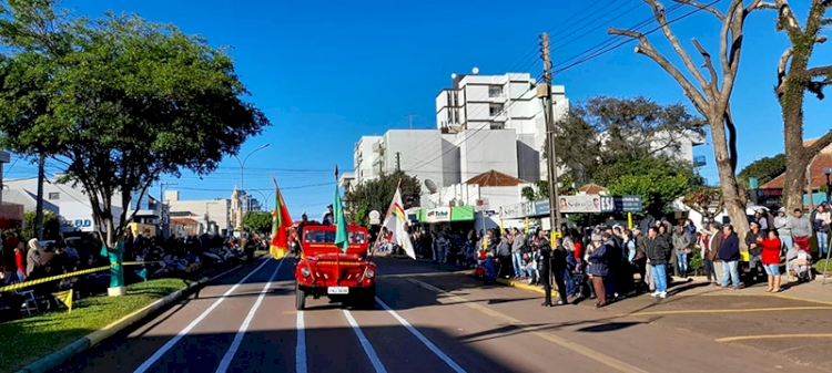 CORPO DE BOMBEIROS levou sua primeira viatura - um Jeep, abrindo o desfile da corporação. Atualmente, a instituição conta com 11 bombeiros militares sob o comando do 1º tenente Fabricio Agnoletto, dois servidores cedidos pela Prefeitura e 25 bombeiros voluntários, sob a presidência de Luiz Fernando Pellens. A frota de viaturas é composta por 3 viaturas ABT (Auto Bomba Tanque), 1 viatura ABS (Auto Busca Salvamento), 2 viaturas leves, uma embarcação e o Jeep