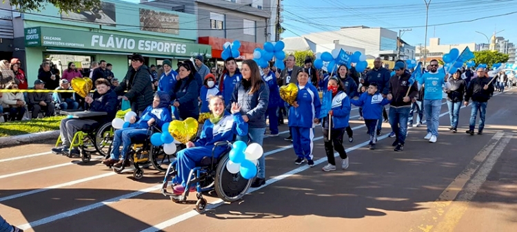 APAE: Colaboradores, alunos, pais e clube de mães fizeram bonito na avenida, apresentando os serviços prestados pela Apae de Três de Maio que em 29 de outubro deste ano completa 53 anos. Mantenedora da Escola de Educação Especial Helen Keller, do Centro de Atendimento Educacional Especializado Helen Keller (AEE) e do Centro Especializado em Reabilitação Intelectual e Auditiva (CER II) - a Apae conta atualmente com 105 alunos e 102 usuários do atendimento do SUS, e um quadro de 70 funcionários
