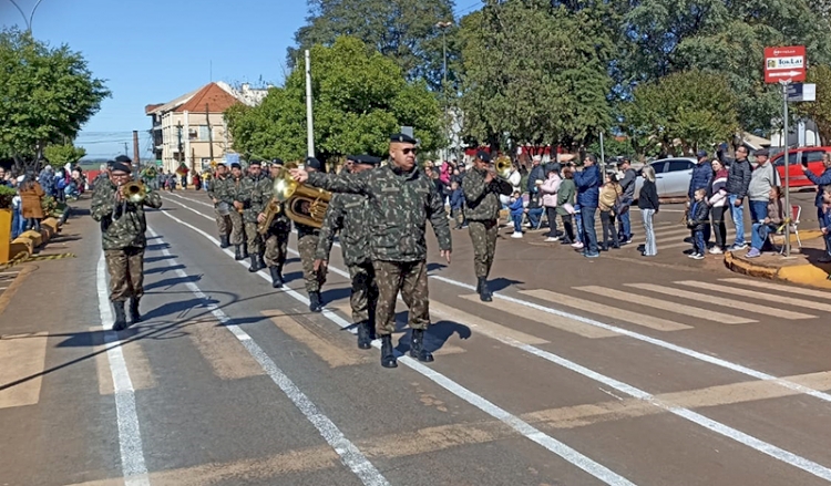 BANDA DE MÚSICA DO 1º BATALHÃO DE COMUNICAÇÕES da Organização Militar Operacional do Comando Militar do Sul, da cidade de Santo Ângelo deu um brilhantismo especial ao desfile. A banda acompanha formaturas e desfiles militares com seus dobrados, hinos e canções. Atualmente está sob a regência do Subtenente Mestre de Música Cláudio Duarte Rodrigues