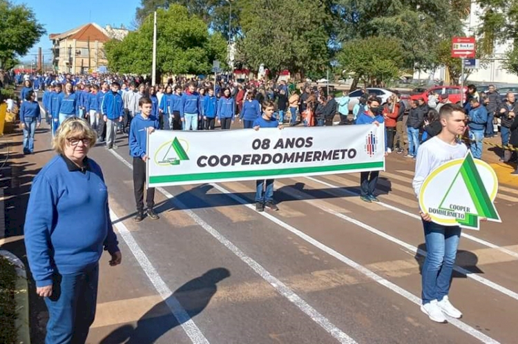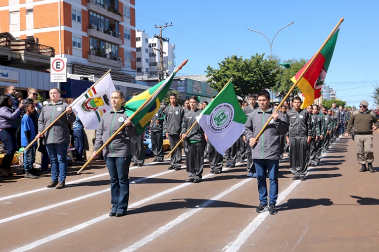 Um dos pontos altos foi a participação dos estudantes, professores e funcionários da Escola Cívico-Militar Caminhos Inovadores, que ao som da Banda de Música do Exército passou pela avenida marchando, lado a lado, todos no mesmo compasso, encerrando o Desfile Cívico no município de Três de Maio.