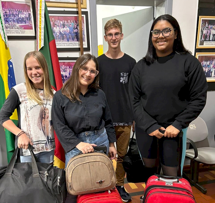 Os alunos Nadine Simone Mazurkewicz, Lucas Dopke e Ana Luisa Silva Moreira e a professora Carolina Sipp participaram da formação em Santo Ângelo