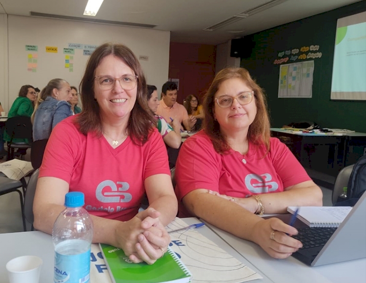 Diretora Rejane Petry e a professora Lusiane Ziemann Tolomini, durante a formação Jovem do Futuro