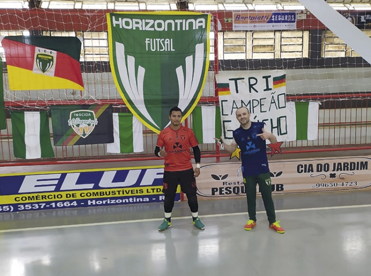 HORIZONTINA FUTSAL – Ontem, quinta-feira, dia 17, o Horizontina Futsal iniciou a caminhada no estadual de futsal, jogando a Liga Gaúcha. Desejamos boa sorte à equipe, principalmente aos atletas três- maienses que compõem o elenco: Jones Planer, ala, e Marquinho, goleiro, (na foto abaixo). E também ao técnico Alexandre Ott, que compõem a comissão técnica.