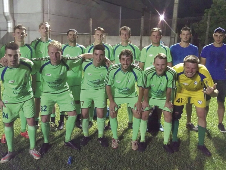 LINHA DO TEMPO: Relembrando o campeão do ano de 2017 do Campeonato de Futebol 7 do município de Três de Maio: Esquina Pértile/Vertente Agronegócios. Na foto abaixo, em pé: Paulo, André, Marcos, Rodrigo, Diogo, Kaio, Juliano e Daniel. Agachados: Vítor, Gustavo, Cristiano, Leonardo, Alex e Marvin.