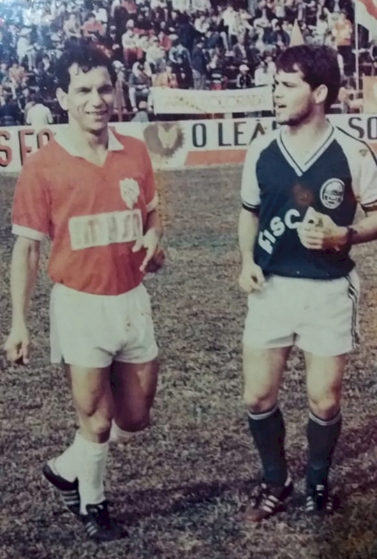 POR ONDE ANDA: Cezar Mazzocco, popular Miquim, começou sua trajetória no futebol da várzea jogando no então tradicional time Toda Hora F.C., do Bairro Cruzeiro, em parceria com seu mano Jian Mazzocco, outro craque do futsal, Claudio André Taffarel, dispensa apresentações, e Roberto Gaúcho, jogou no Cruzeiro de BH entre outras equipes, outros velhos e eternos amigos da bola. Em 1983 foi atrás do sonho de ser atleta profissional. Então, com 19 anos, chegou ao Inter de Santa Maria, para fazer parte do time Juvenil, ficando até 1984, onde foi dispensado e retornou para Santa Rosa, ingressando no Palmeiras da Vila Glória, para a disputa do Campeonato Amador onde jogou até 1985. Em seguida, acertou sua transferência para o Dínamo F.C., onde começou sua trajetória no futebol profissional. Em 1987 se transferiu para o VERDE BRANCO da baixada, ORIENTAL F.C., ficando por uma temporada e retornando para o Dínamo F.C., em 1988. Passou também por Flamengo de Varginha – MG; São Borja FC – RS. Em 1993 retornou a Três de Maio para vestir a camiseta da Associação Três-Maiense de Esportes, encerrando seu ciclo profissional no futebol no Dínamo F.C. no ano de 1994, quando jogou a primeira divisão. Atualmente, reside em Santa Rosa, e a sua nova prática esportiva é o Tênis no Saibro. Mesmo assim, sempre acha um tempo para o futebol com os amigos! Na foto, Cezar vestindo a camiseta do Oriental num confronto contra o seu compadre João Luis, na época jogava no São Luiz de Ijuí, grandes duelos na 2º divisão.