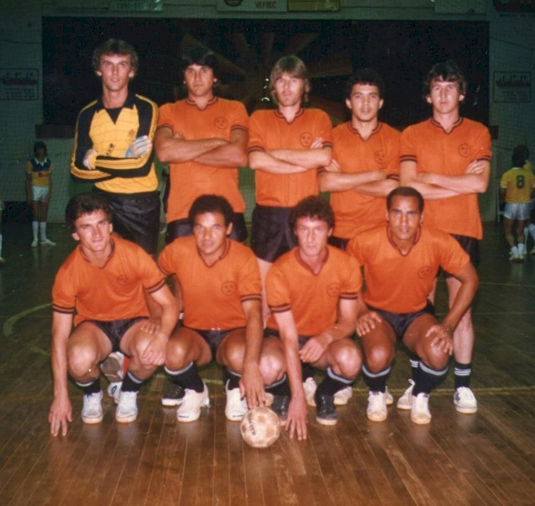Alfagro, campeão da Copa Antônio Cereser edição 84/85, no Ginásio Cardeal Pacelli. Em pé: Tiecher, Nelsão (em memória), Paulo, Vander Jesus e Moa. Agachados: Marcos Azarão, Lautério, Zamba e Ademir Chocolate.