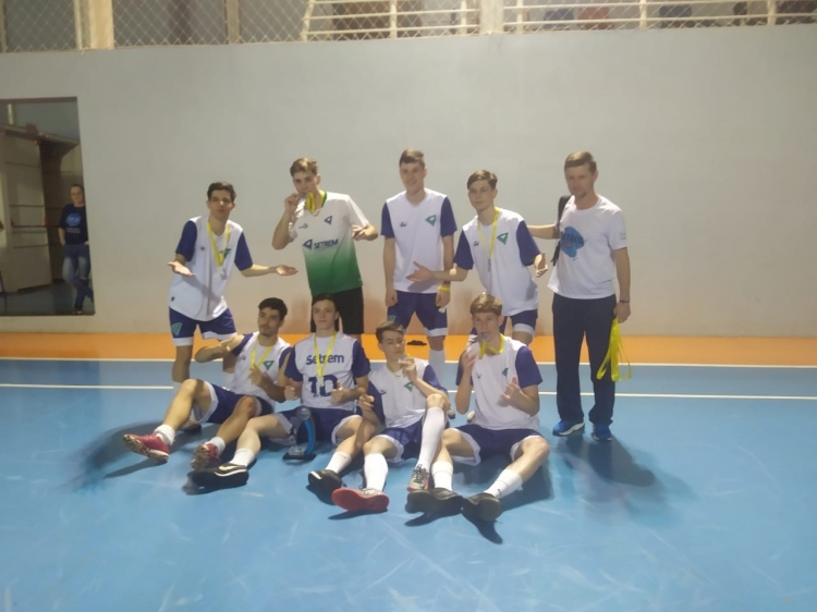 Equipe da Setrem conquistou o título de campeã na Onase de Futsal sub-17. Na foto, em pé: Gabriel, José, Vinicius, Leonardo e professor Chiquinho. Sentados: Muri, Walter, Lorenzo e Guilherme