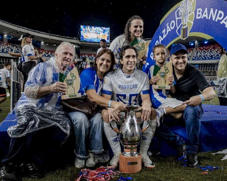 Atacante Nicolas ao lado dos familiares. Família Johann acompanhou a final do Campeonato Paraense, no último final de semana, em Belém