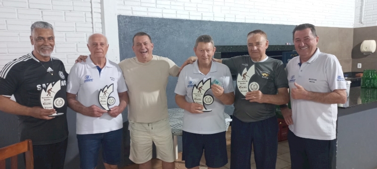 Equipe campeã do Torneio de Bocha com os representantes das entidades: Vilson, Breno (Trecar), Elton, Rudi, Dalvin Machado e Inácio