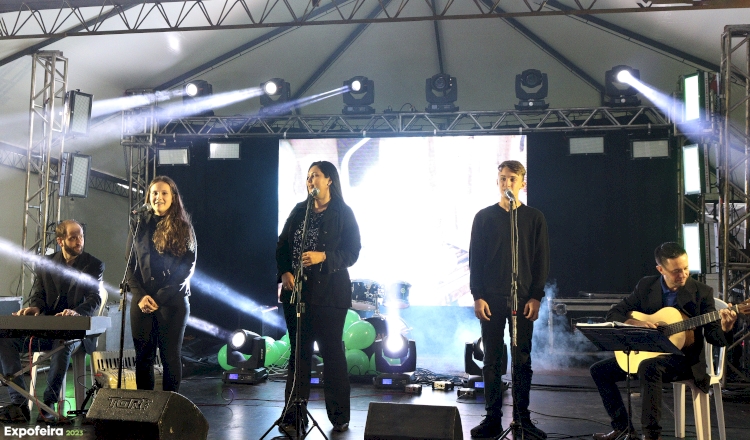 EXPOFEIRA I - Gente nossa entoando os hinos Nacional, Riograndense e de Três de Maio nos eventos oficiais da Expofeira 2023. Bela iniciativa, todos estão de parabéns. No registro, Maria Eduarda Zucatto Müller, Greicy Müller e Léo Winter Weise acompanhados por Marlon Ludwig e Jurandir Ferretti na abertura oficial da Expofeira 2023 realizada no último sábado.