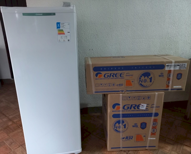 INDEPENDÊNCIA – A Brigada Militar foi contemplada com o projeto ‘Segurança Suplementar’. Com a verba, oriunda do Banco do Brasil, foram adquiridos um freezer e um aparelho de ar condicionado que serão de grande valia para o uso diário da BM. O comandante, 1° Ten Vantuir agradece ao Carlos Hellmanzick, gerente geral, e Mário Zanatta, gerente de serviços, pela parceria com a instituição.