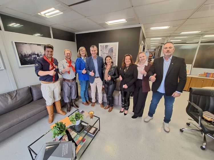 COMITIVA NA CAPITAL I – O vereador Carlos Filipin (PDT) liderou uma comitiva em busca de recursos e informações sobre projetos. Ao secretário de Cultura, Eduardo Loureiro, a patroa do CTG Troperios do Buricá, Noemia Sartor e o vice-patrão Téo Pless Krever, formalizaram o convite para o baile de aniversário da entidade e solicitaram apoio aos projetos do CTG. Já a diretora da Escola Germano Dockhorn, professora Marjane dos Santos, representando o CPM da instituição, entregou um pedido de apoio financeiro para as comemorações dos 50 anos da escola. O secretário Loureiro recomendou o envio da habilitação técnica até dia 3 de junho.