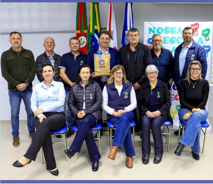 APAE – Na semana passada, o deputado federal Paparico Bacchi (PL) e presidente da Frente Parlamentar das APAES visitou a APAE de Três de Maio. Na ocasião, Bacchi disse que irá trabalhar para destinar recursos para instituição. Na foto, o presidente Paulo Bender de Camargo e integrantes da diretoria com o deputado e assessores.