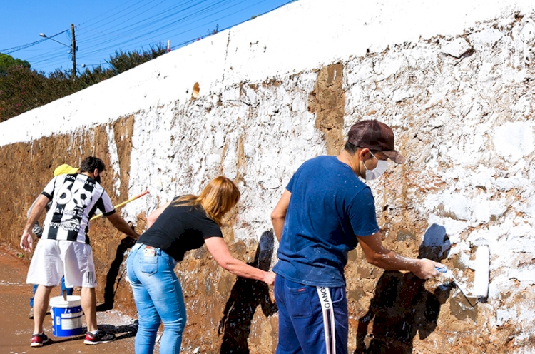 NOVA CARA NOS MUROS PÚBLICOS DA CIDADE – No último sábado, foi a vez dos muros de pedra na Rua Horizontina ( trecho que conta com dois níveis) e o muro no bairro Promorar receberem limpeza e pintura, para posteriormente receber a arte dos grafiteiros interessados, melhorando assim o cenário das ruas. A ação teve a participação do prefeito Corso e do vice Josias e alguns secretários.