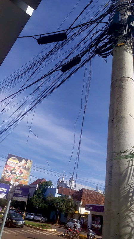 FIOS CAÍDOS – É visível a quantidade de fios de internet ou telefones pendurados nos postes em Três de Maio; isso acontece quando caminhões passam e arrebentam os fios. Mas, chama atenção que, quando é colocada a nova fiação, restos de fios arrebentados ficam pendurados no poste ou são jogados na calçada. Ao fazer o reparo, as empresas deveriam dar um destino adequado a estes fios. São poucas que recolhem o que sobra, e algumas até acabam recolhendo (dando um destino correto) os fios deixados jogados pela concorrente.