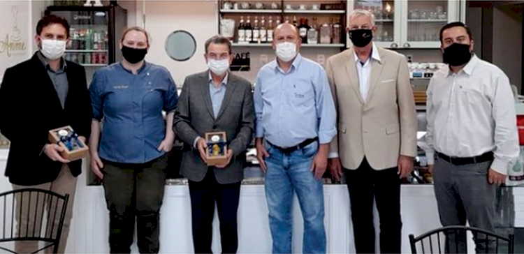 FECOMÉRCIO – O presidente do Sistema Fecomércio, Luís Carlos Bohn, esteve visitando o Sindilojas de Três de Maio de segunda-feira, para tratar de assuntos de interesse empresarial e das ações realizadas durante as suas gestões frente à entidade. Ele foi recebido pelo presidente Dilson José Mireski e demais integrantes da diretoria. Bohn também participou de um encontro informal com o prefeito Marcos Corso e o secretário de Desenvolvimento Econômico e Turismo, Cesar da Fontoura. O encerramento foi na Anme Café e Confeitaria, em Três de Maio, com bom café da tarde.