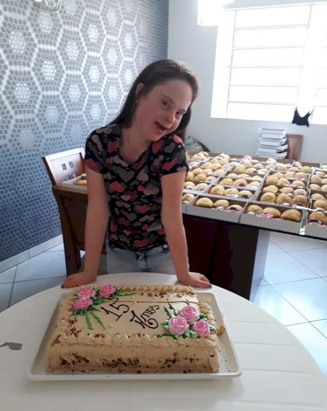 “Me lembro de quando ela começou a voltar da Apae de ônibus sozinha quando tinha apenas 5 anos, eu ficava com o coração partido, mas isso foi uma grande conquista para ela. E ela tem uma autoestima muito boa. Ajuda a fazer bolo... Ama ir na casa da vovó porque pode ajudar a fazer massa, pastel, quebrar os ovos... ela adora. Sem contar que usa tablet, celular, notebook, TV, YouTube, Netflix, ela sabe tudo, liga e assiste o que ela quer”, explica a mãe.